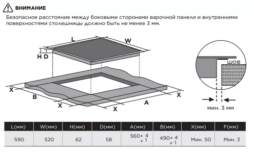 - Ширина, встраивания мм: 560