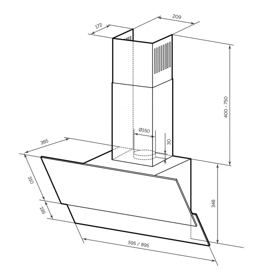Диаметр воздуховода,мм 150