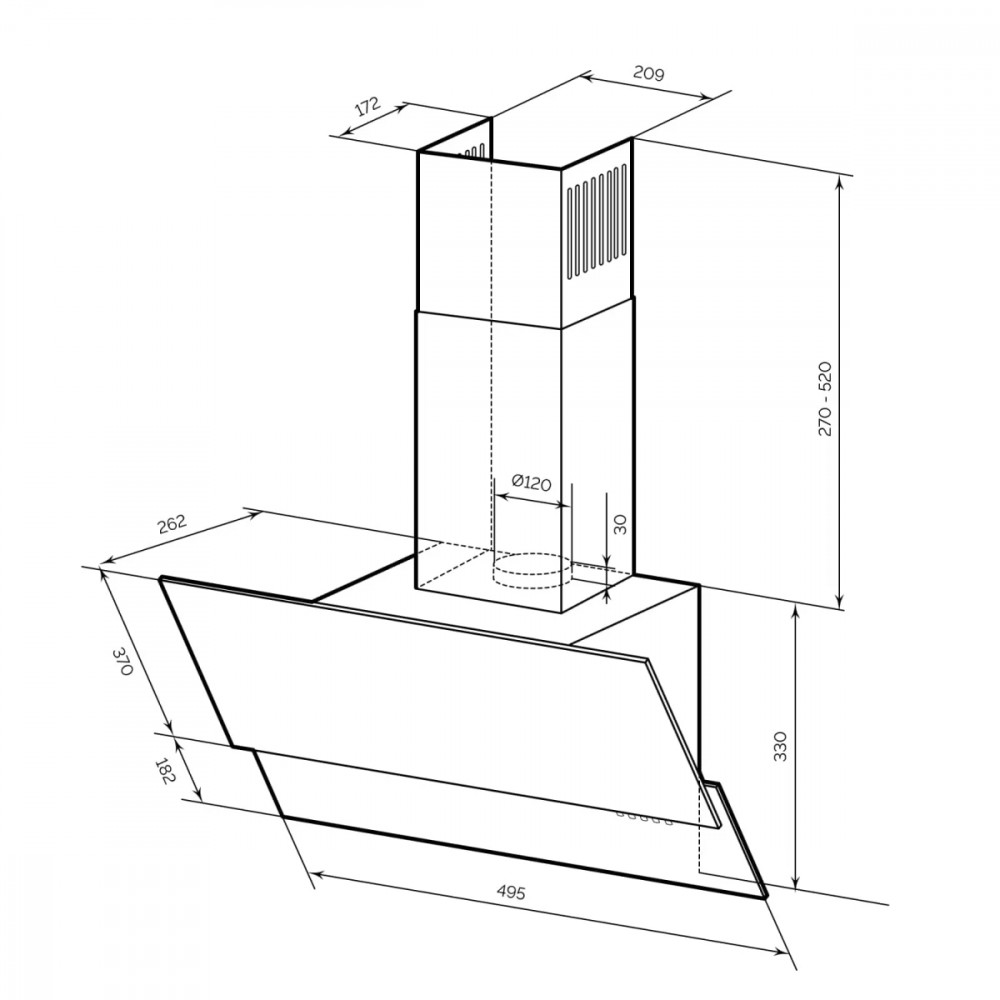 Диаметр воздуховода,мм 120