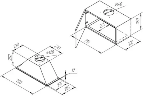| Размер (ШхГхВ) | 700*285*250 мм |