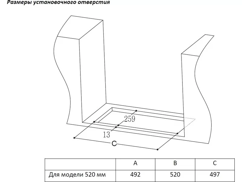 - Ширина, встраивания мм: 520