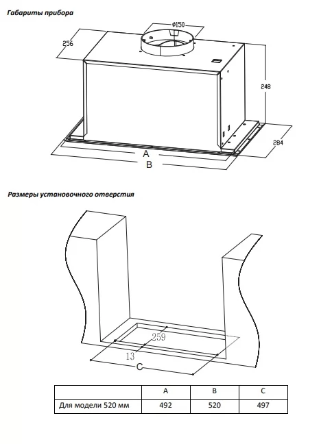 - Ширина, встраивания мм: 520