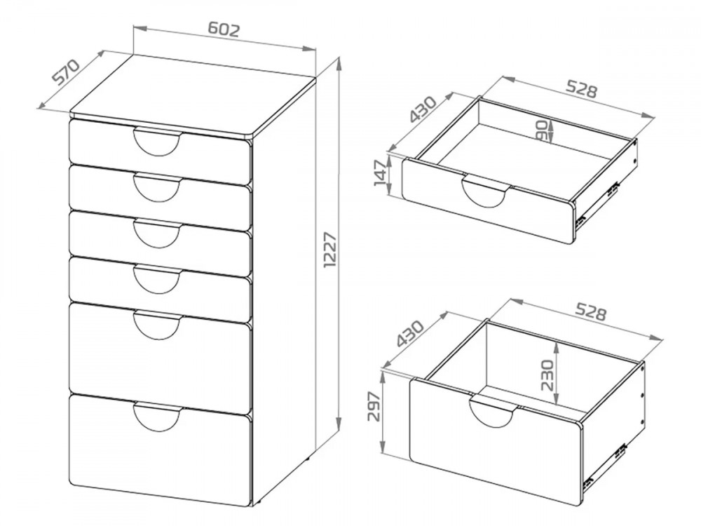 Комод 6 ящиков 60x57x120 ПИКСИ робкий подснежник в Тюмени
