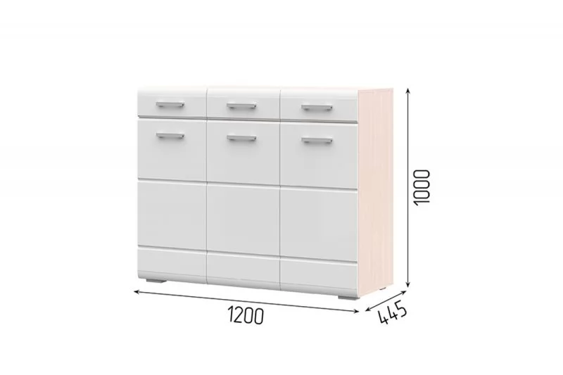 СИМБА Комод 3ящ, 3дв. (ш1200*г442*в985мм), Белый глянец в Тюмени