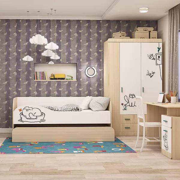 Кровать двухуровневая Левая Кот № 900.1 (туя светлая/белый) в Тюмени