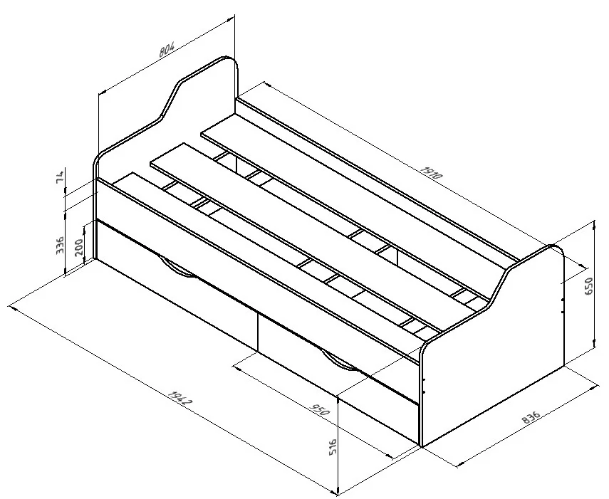 Размер спального места: 800х1900 мм