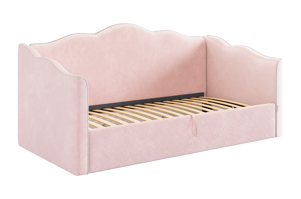 Кровать-софа Лея К1 90х200 см нежно-розовый (велюр)/галька (велюр) в Тюмени