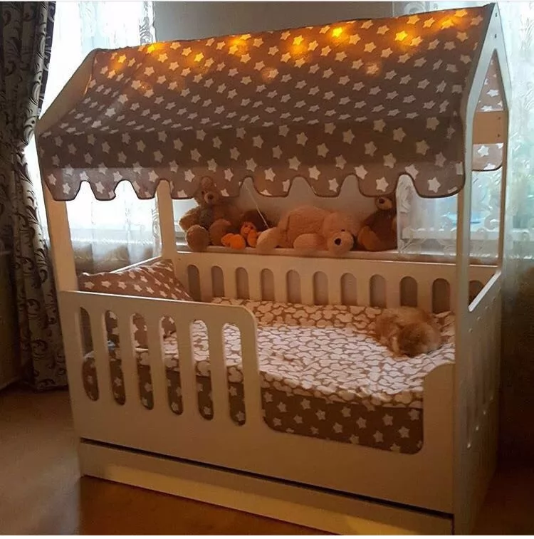 Кровати-домики можно доукомплектовать аксессуарами из текстиля: