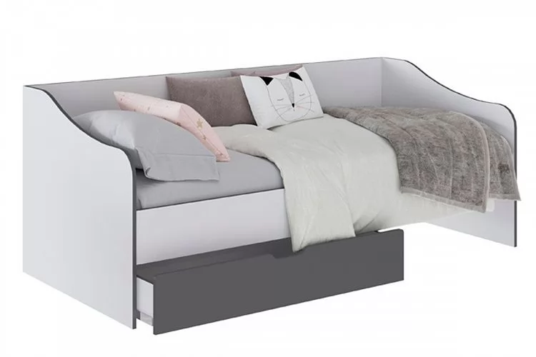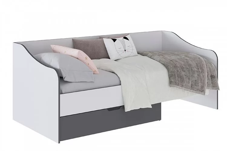 ТЭББИ Кровать с ящиком (сп/м 900*2000мм), Белый-Графит серый (ЛАМЕЛИ) в Тюмени