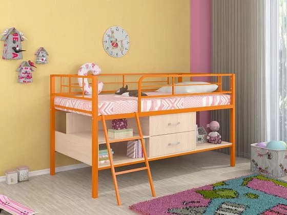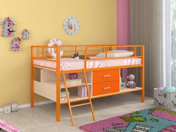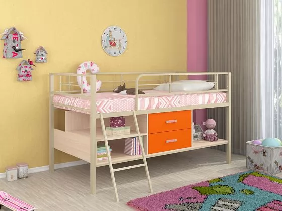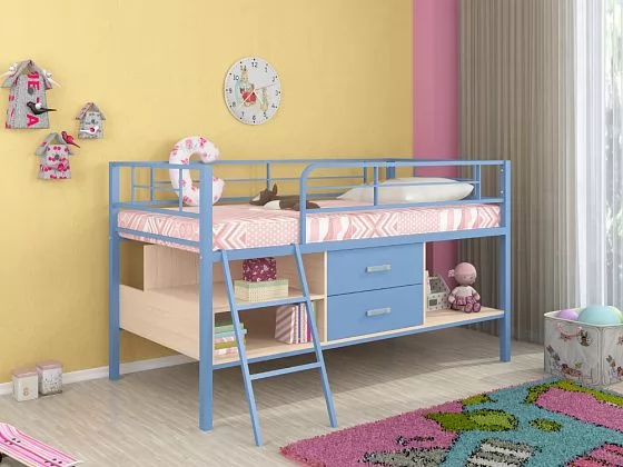 - Металлическая кровать-чердак "Севилья-мини" может использоваться в спальне подростков и взрослых, так как способна выдерживать нагрузку до 180 кг.