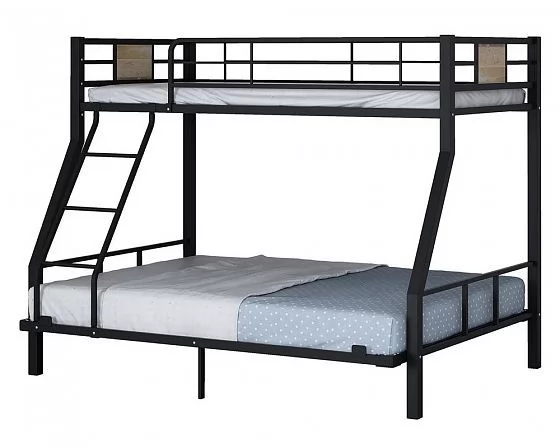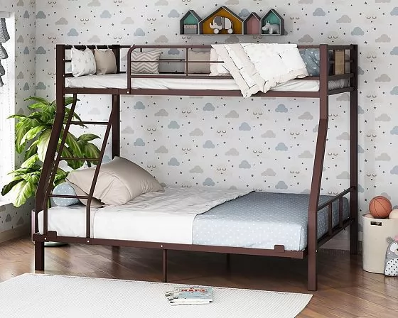 Металлическая двухъярусная кровать "Гранада-1 140" может использоваться в спальне подростков и взрослых, так как способна выдерживать нагрузку до 200 кг на одно спальное место. Конструкция кровати предусматривает спальные места разных размеров: верхнее 90*190 см и нижнее 140*190 см. В отличие от кроватей из ЛДСП кровать из металла выглядит менее громоздкой. Лестницу можно установить с любой стороны кровати.