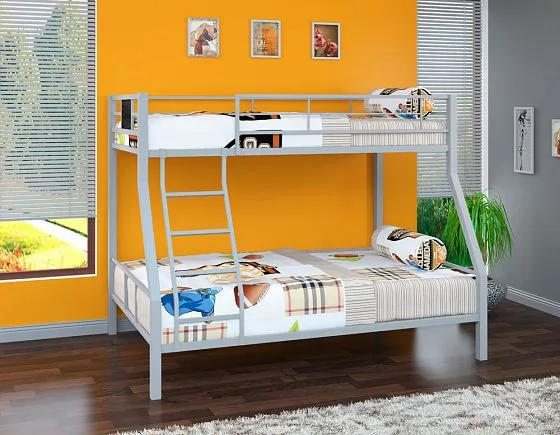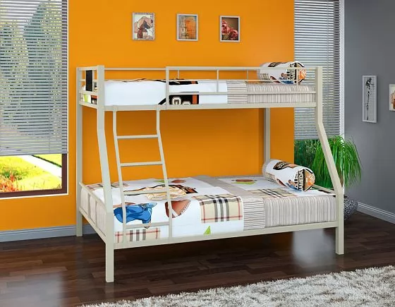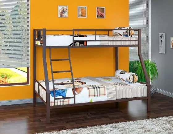 Металлическая двухъярусная кровать "Гранада-1" может использоваться в спальне подростков и взрослых, так как способна выдерживать нагрузку до 180 кг на одно спальное место. Конструкция кровати предусматривает спальные места разных размеров: верхнее 90*190 см и нижнее 120*190 см. В отличие от кроватей из ЛДСП кровать из металла выглядит менее громоздкой. Лестницу можно установить с любой стороны кровати.