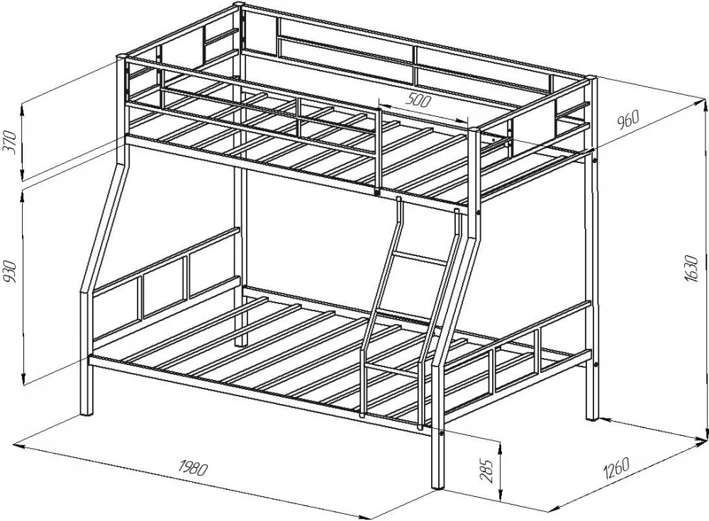 Размер нижнего спального места: 1200х1900 мм