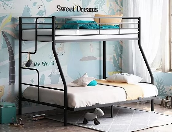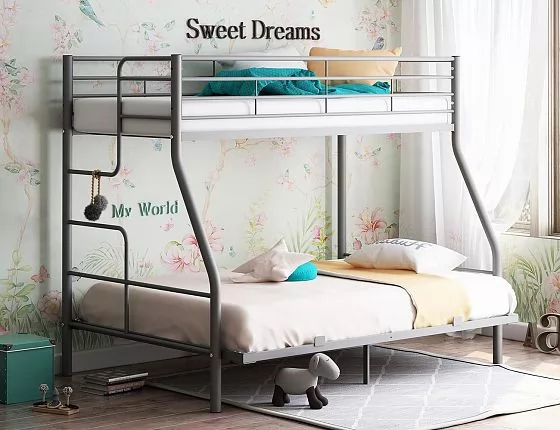 Оригинальная конструкция кровати "Гранада-3 140" предусматривает наличие двух параллельно расположенных спальных мест разного размера: 900*1900 мм и 1400*1900 мм. Кровать изготовлена из металла, что позволяет ей выдерживать нагрузку до 180 кг на одно спальное место. Высокая прочность кровати позволяет использовать ее как в детской, так и во взрослой спальне.