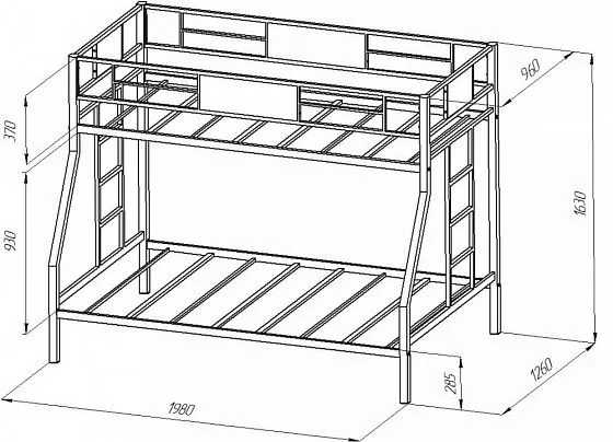 Размер нижнего спального места: 1200х1900 мм