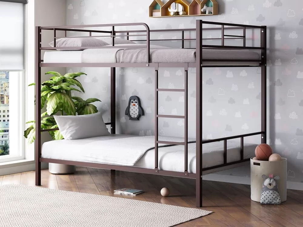 Металлическая двухъярусная кровать Севилья от производителя Формула мебели способна выдерживать нагрузку до 180 кг (на одно спальное место), что делает ее подходящей как для детей, так и для взрослых. В отличие от кроватей из ЛДСП выглядит менее громоздкой.