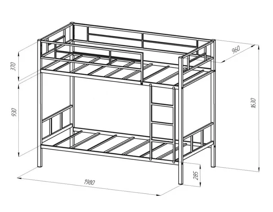 Материал каркаса двухъярусной кровати: стальная труба размером 40*40 мм, 40*20 мм. Все металлические элементы кровати покрыты износоустойчивой полимерной порошковой краской без запаха.
