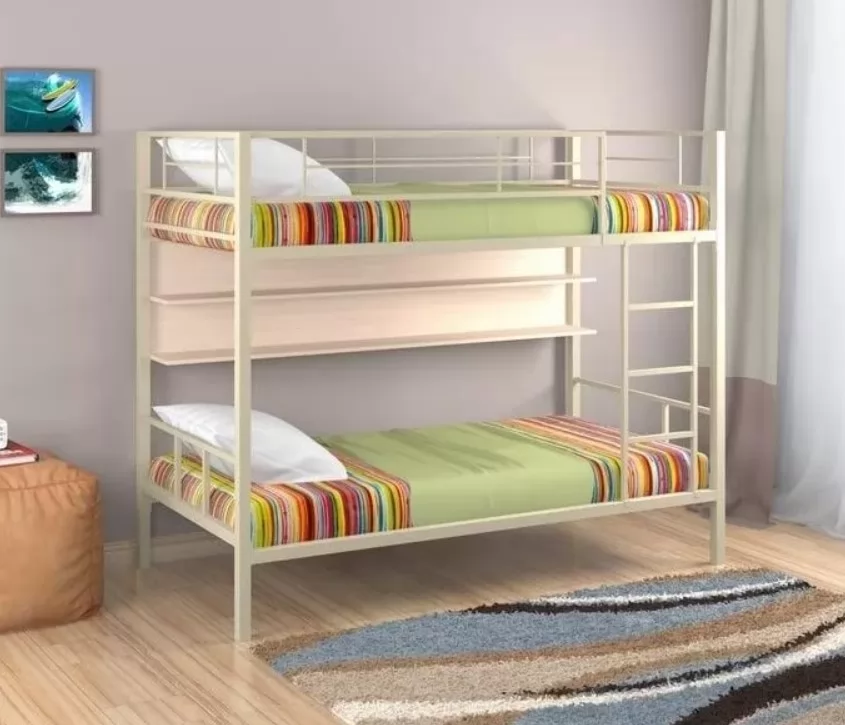 Металлическая двухъярусная кровать "Севилья-2" может использоваться в спальне подростков и взрослых, так как способна выдерживать нагрузку до 180 кг на одно спальное место. Конструкция кровати предусматривает два спальных места размером 90*190 см каждое. Верхнее спальное место защищено бортиками. Прочная лестница может быть установлена справа или слева. В отличие от кроватей из ЛДСП кровать из металла выглядит менее громоздкой.