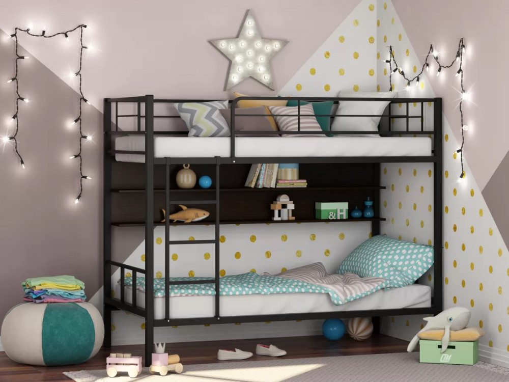 Над нижним спальным местом располагается полка, на которой удобно разместить книги или аксессуары.