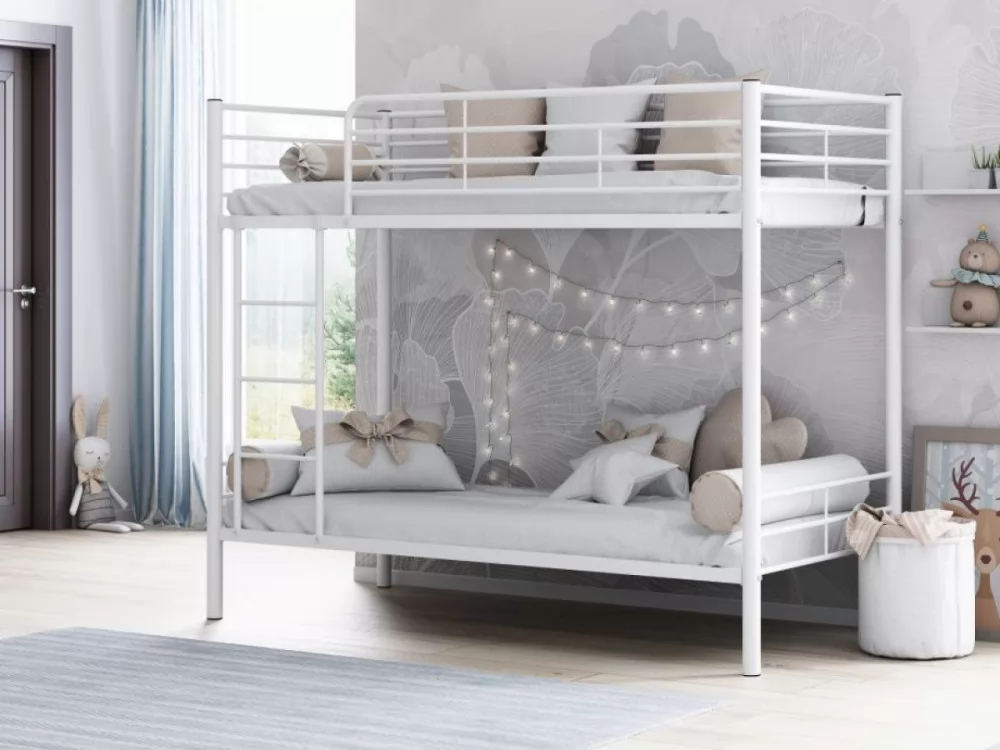 - Конструкция кровати предусматривает два спальных места размером 90*190 см каждое. Верхнее спальное место защищено бортиками.
