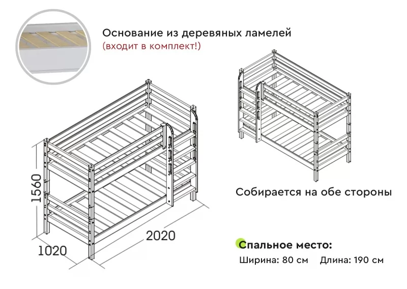Основание идет в комплекте, матрас приобретается отдельно. Кровать собирается на обе стороны.