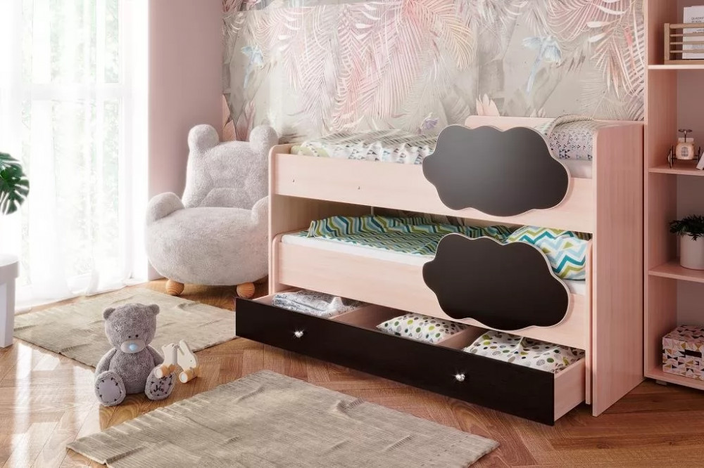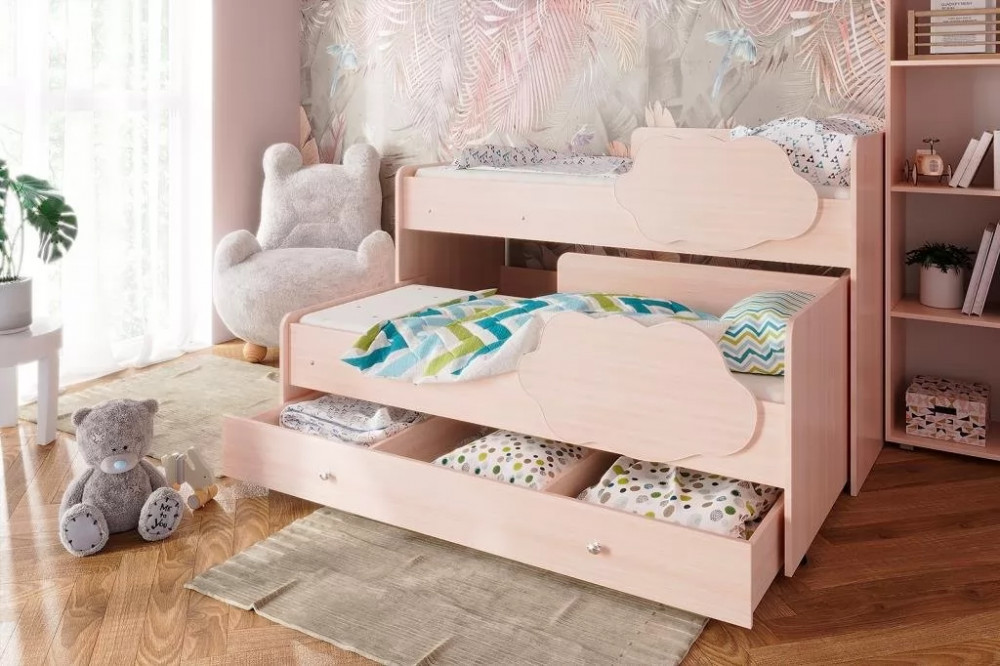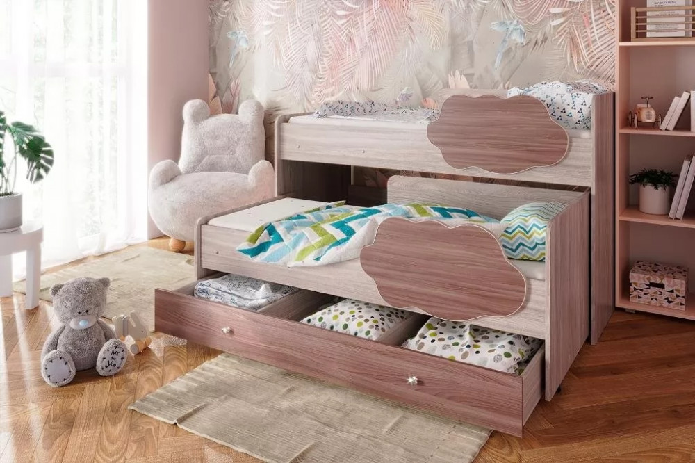Двухъярусная выкатная кровать "Соник" - яркая стильная мебель в детскую комнату. Кровать можно расположить удобным образом, в сложенном состоянии она занимает минимум полезной площади - экономит пространство. Бортики в форме облачка обезопасят малышей от падения. Благодаря большому выбору цветов, можно подобрать кровать к любому интерьеру.