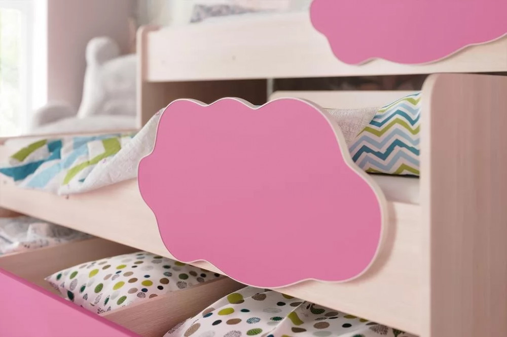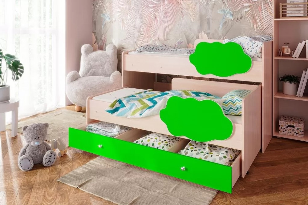 Двухъярусная выкатная кровать "Соник" - яркая стильная мебель в детскую комнату. Кровать можно расположить удобным образом, в сложенном состоянии она занимает минимум полезной площади - экономит пространство. Бортики в форме облачка обезопасят малышей от падения. Благодаря большому выбору цветов, можно подобрать кровать к любому интерьеру.