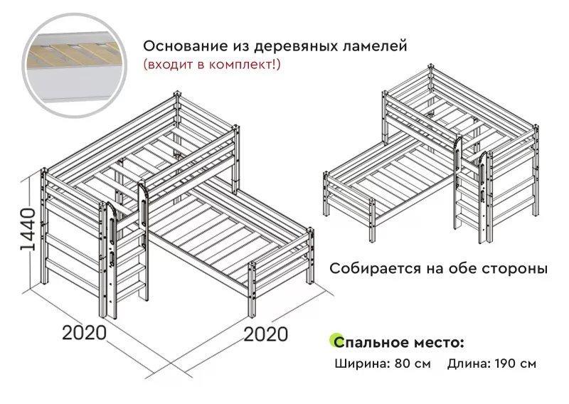 Основание идет в комплекте, матрас приобретается отдельно. Кровать собирается на обе стороны.