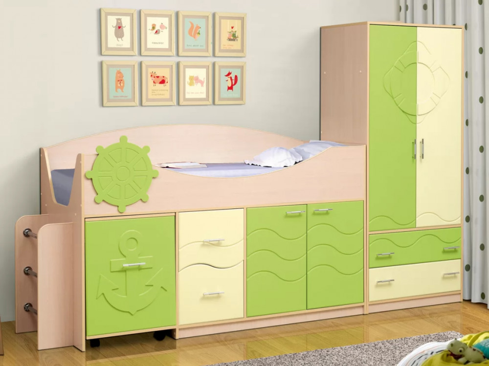 - Дуб молочный-Светлозеленый матовый-Синий матовый