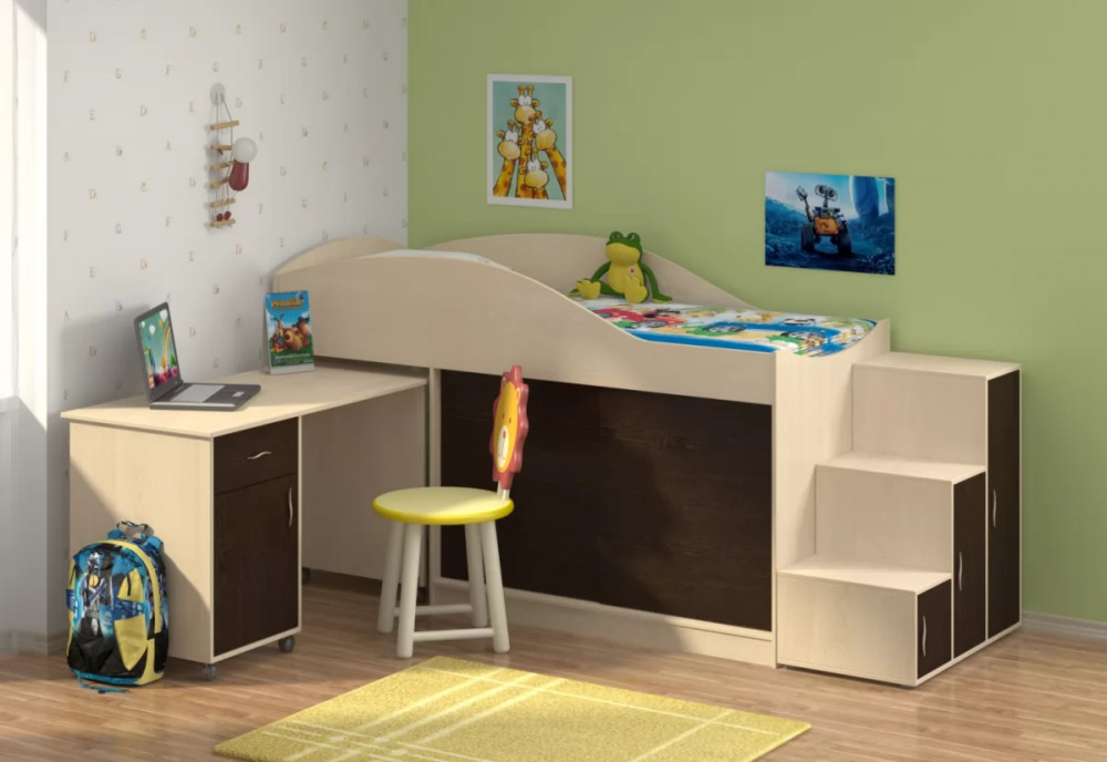 Компактный и функциональный детский уголок "Дюймовочка-3" объединяет удобное спальное место, тумбу с полками для хранения вещей, письменный стол. Такой уголок экономит пространство в детской комнате, при этом обеспечивая все необходимые функции. Кровать подойдет детям от 1 года до 18 лет.