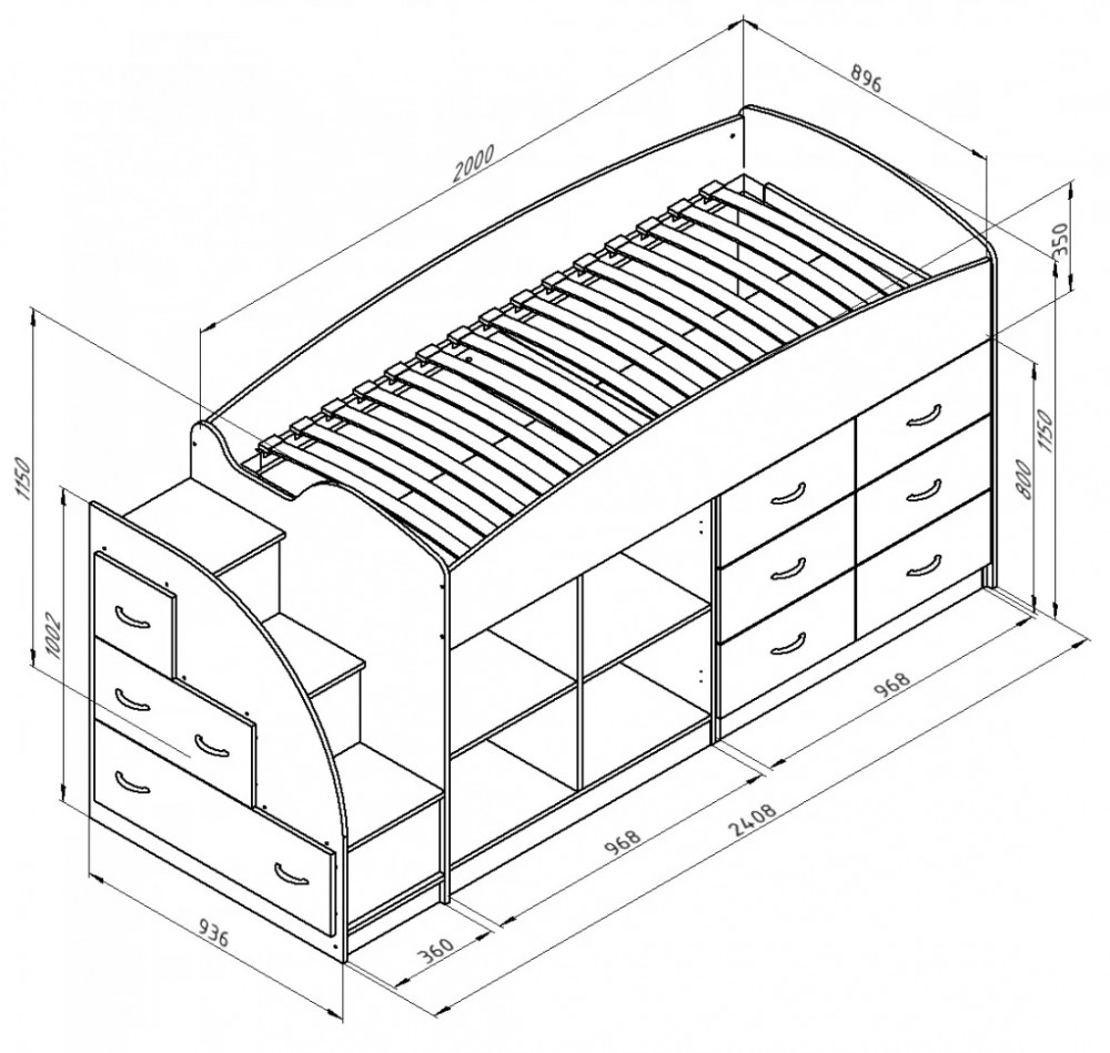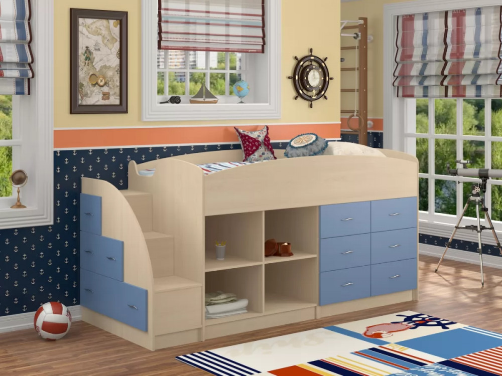Корпус выполнен из ЛДСП Egger, кромка - ПВХ 2 мм и 0,4 мм. Фурнитура производства России, Турции, Германии. Сборка комплекса возможна в любую сторону. Максимальная нагрузка на спальное место 90 кг. Гарантия производителя: 18 мес.