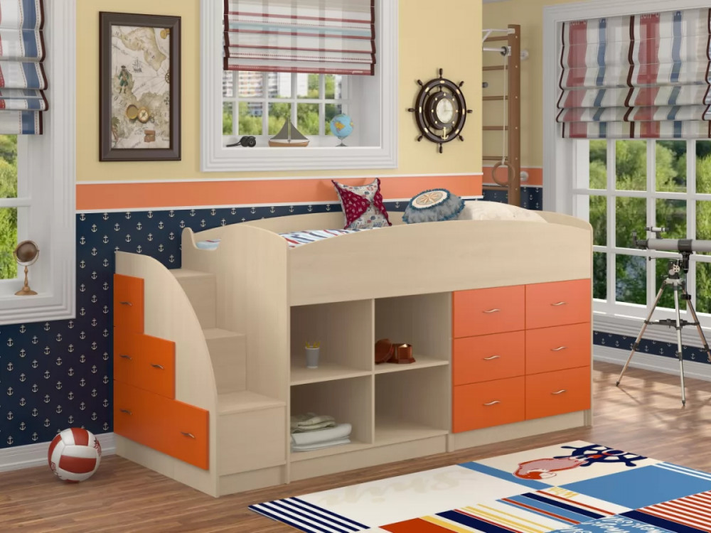 Компактный и функциональный детский уголок "Дюймовочка-4/1" объединяет большое удобное спальное место и множество мест для размещения и хранения разнообразных вещей. Такой уголок экономит пространство в детской комнате. Кровать подойдет детям от 1 года до 18 лет.