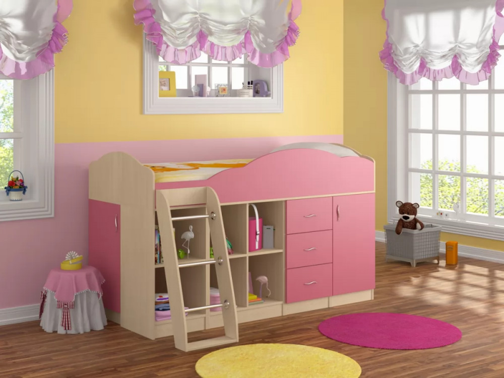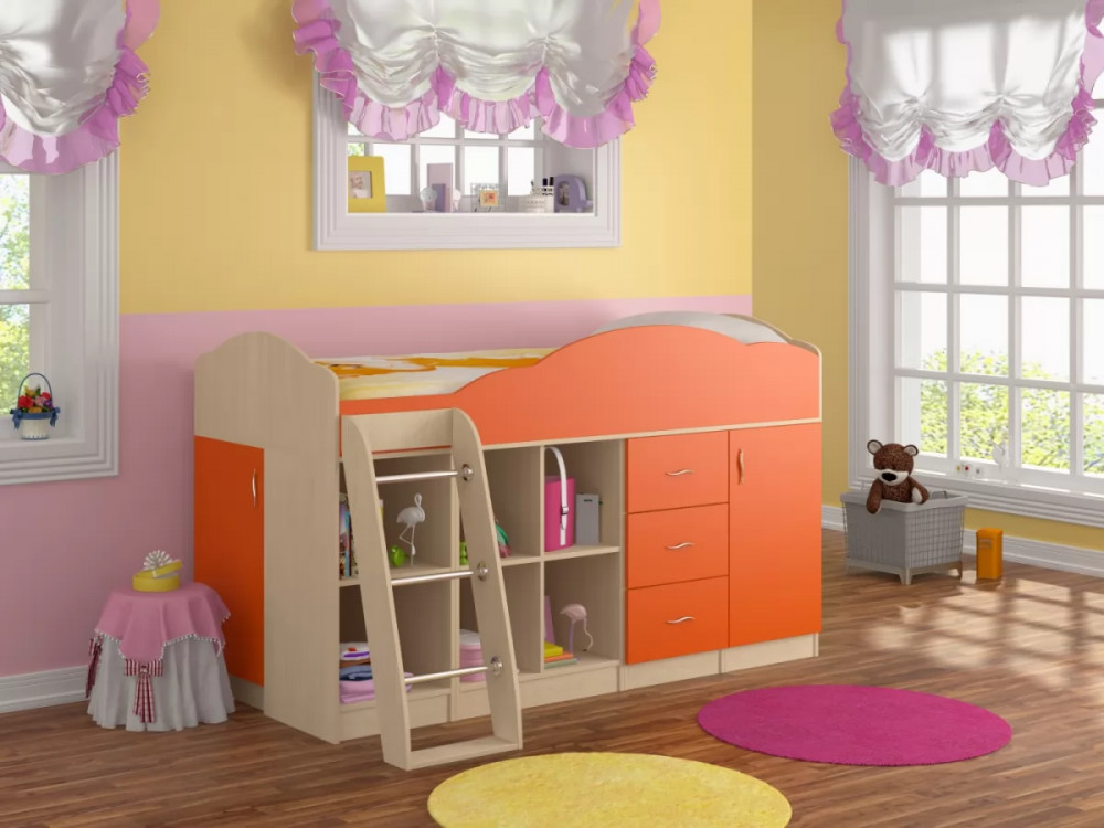 Компактный и функциональный детский уголок "Дюймовочка-5.4" объединяет большое удобное спальное место и множество мест для размещения и хранения разнообразных вещей. Такой уголок экономит пространство в детской комнате. Кровать подойдет детям от 1 года до 18 лет.