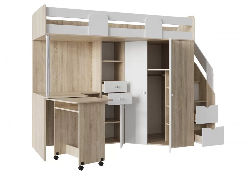 Кровать-чердак МИЙА_А Дуб сонома светлый/Белый в Тюмени