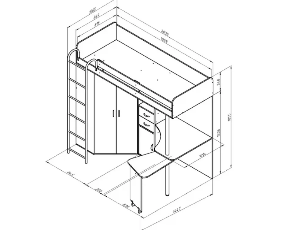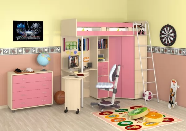 Кровать-чердак "Теремок-М85" - это целый комплекс мебели, включающий в себя спальное место размером 200*80 см, шкаф для одежды, пенал с ящиками и полноценный рабочий стол. Прочная конструкция рассчитана на детей до 16 лет. Такой уголок экономит пространство в детской комнате, при этом обеспечивая все необходимые функции.
