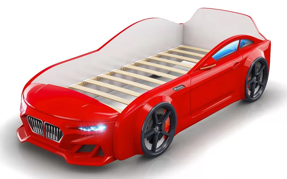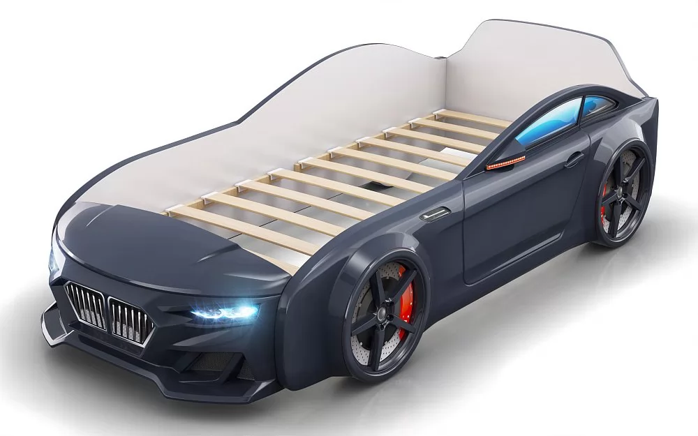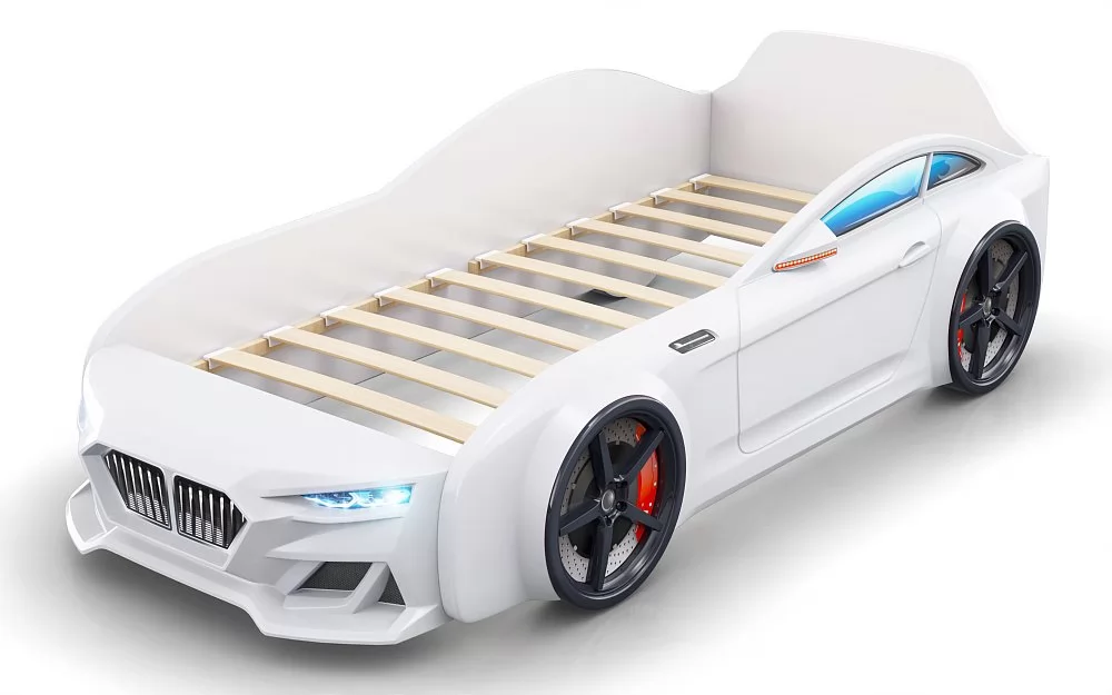 Кровать-машинка DYNAMIC на ламелях с объемным капотом и подсветкой фар в Тюмени