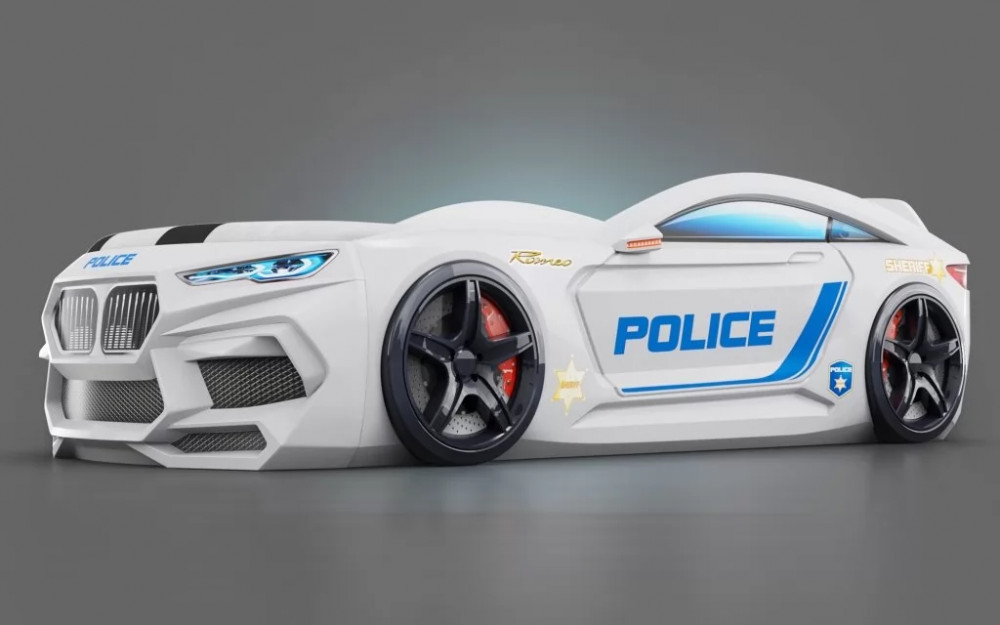 Кровать-машинка ROMEO-М Полиция с ящиком и подсветкой фар в Тюмени