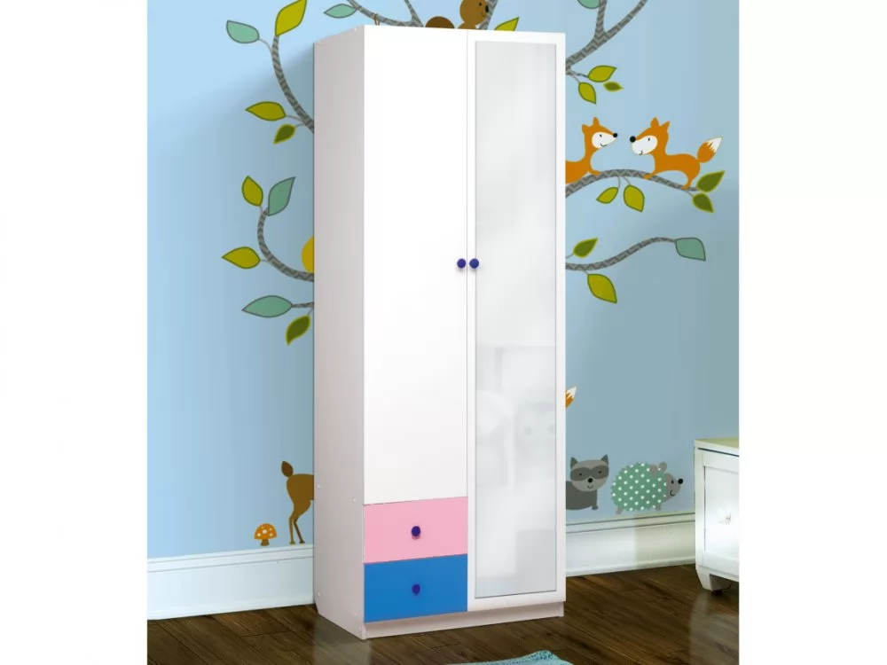 Шкаф 2-х дверный комбинированный с ящиками и зеркалом Радуга в Тюмени