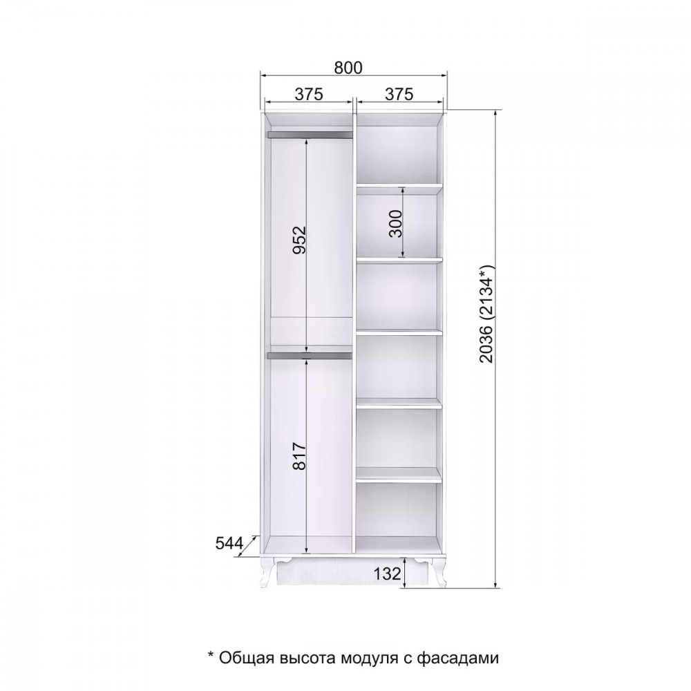 Размер: (Ш*В*Г) 800*2134*544 мм