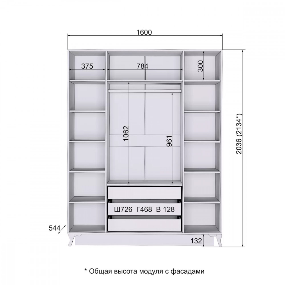 Размер: (Ш*В*Г) 1600*2134*544 мм