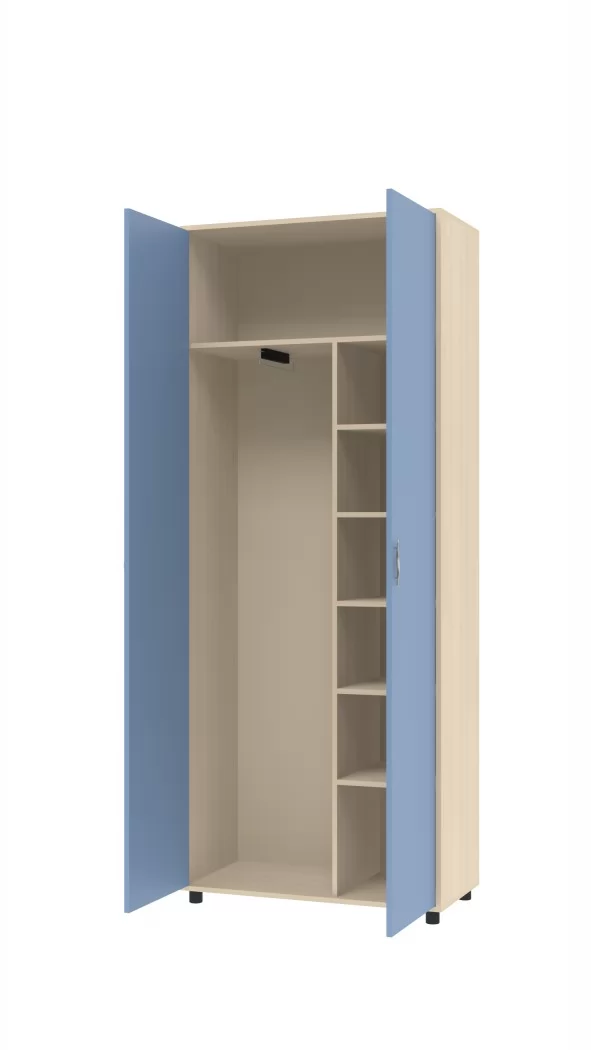 Шкаф двухстворчатый "Дельта-2" позволяет компактно разместить личные вещи ребенка в детской комнате. Внутри шкафа есть антресольная полка, большое вертикальное отделение с выдвижной штангой, отделение с пятью полками. Шкаф является универсальным, расположение полок и штанги можно менять как на одну, так и на другую сторону.