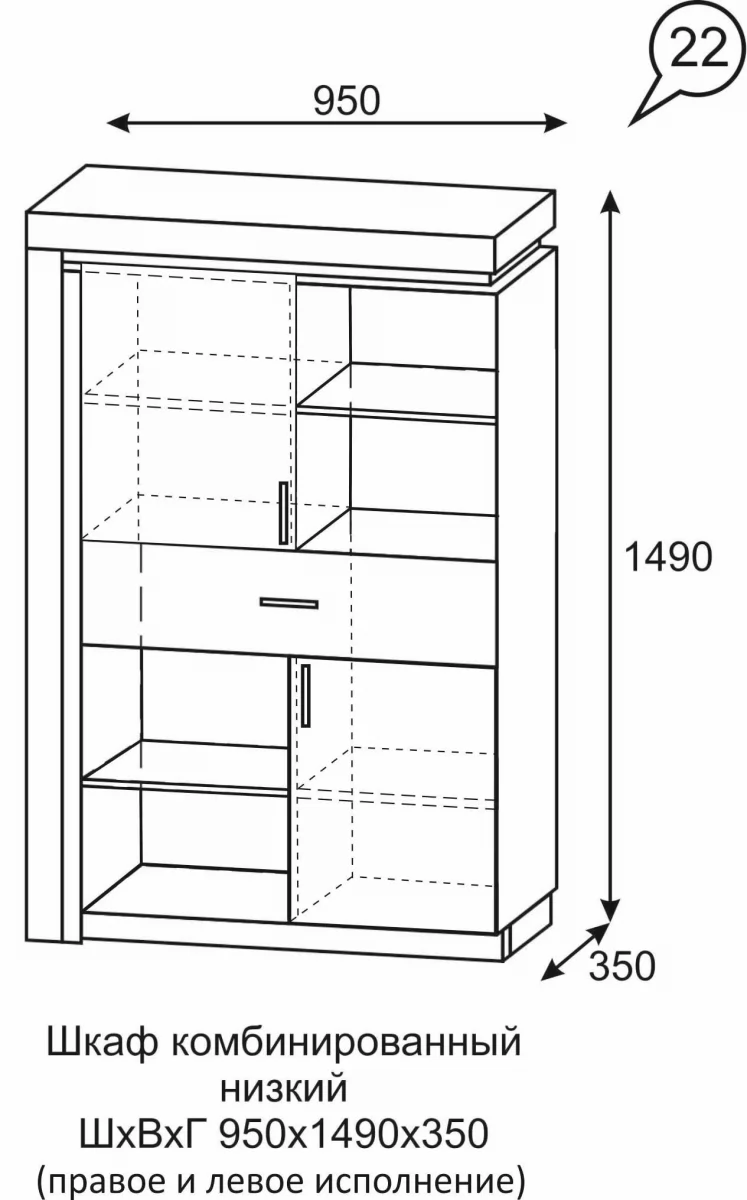 Шкаф комбинированный низкий Люмен №22 в Тюмени