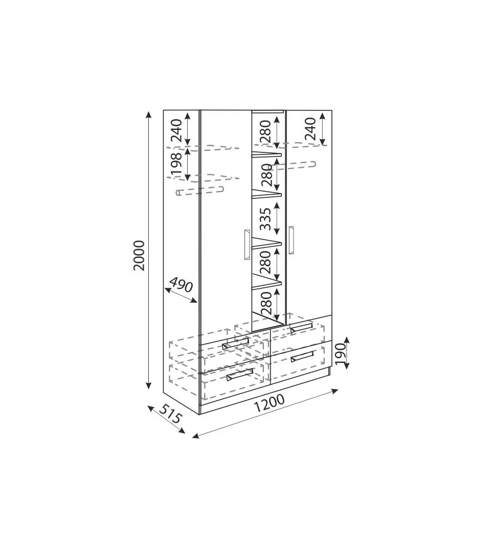 Размеры (Ш*В*Г)(мм): 1200*2000*515