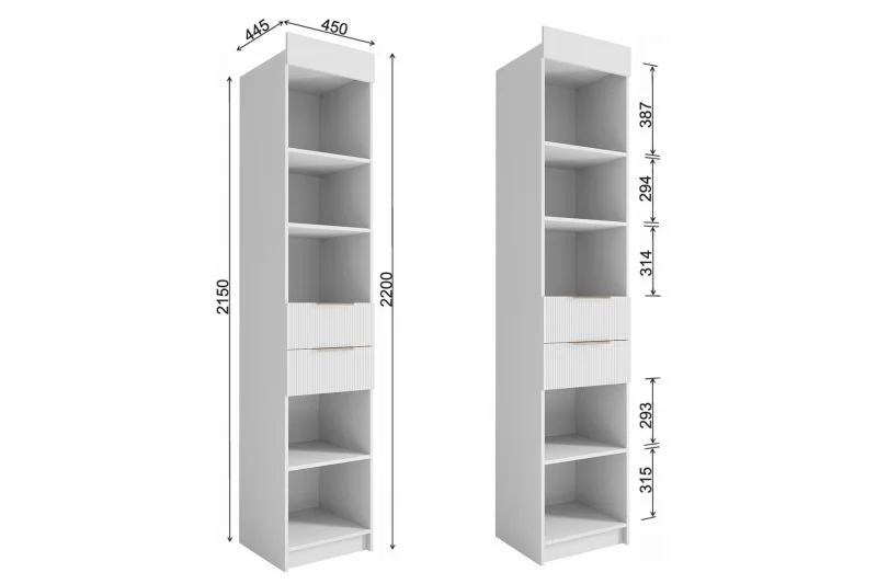 ЛАВИС СД 450.1/2 Стеллаж 450 с ящ. (ш450*г445*в2200мм), белый в Тюмени