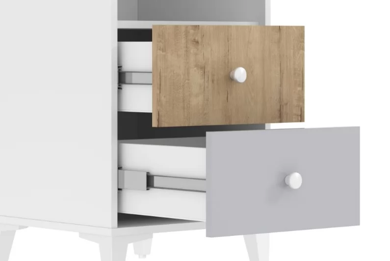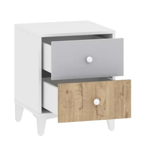 Прекрасным дополнением к интерьеру спальни станет прикроватная тумба из коллекции «Морти». Лаконичные формы, прямые линии и натуральные светлые природные оттенки – отличительные черты коллекции. Главной изюминкой модели являются контрастные выдвижные ящики, высокие опоры и минималистичные ручки. Высота ножек позволяет с легкостью проводить уборку. Удобная высота тумбы позволяет разместить светильник и с комфортом читать книгу перед сном. Наличие двух выдвижных ящиков позволяет положить в них любимые мелочи, сохраняя при этом порядок в комнате. Направляющие полного выдвижения позволят использовать каждый сантиметр ящиков.