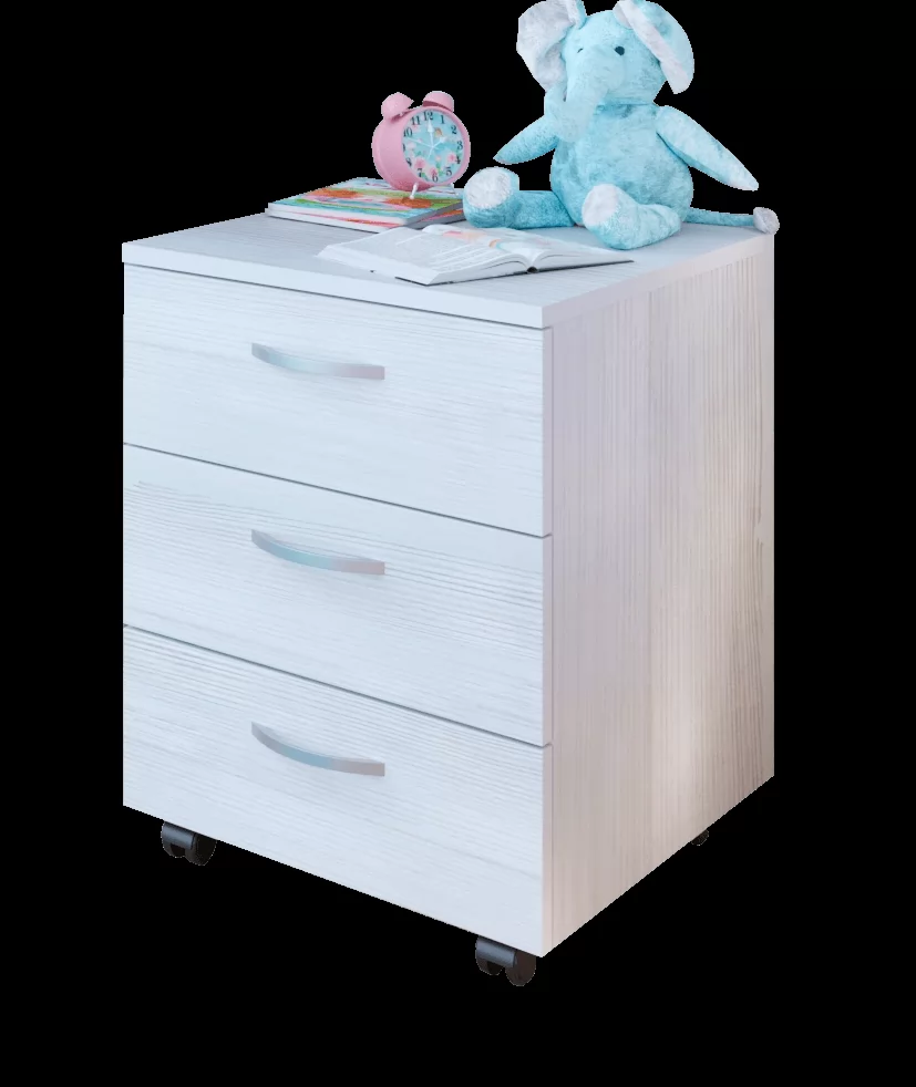 Тумбочка имеет три вместительных выдвижных ящика, прочный каркас и качественные направляющие гарантируют длительный и комфортный период ее эксплуатации.