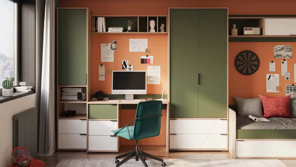 Набор детской мебели «Лео» №3 Гикори джексон/Белый матовый/Дымчатый зеленый в Тюмени