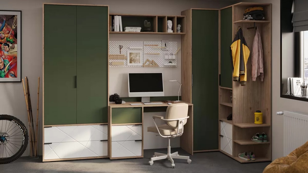 Набор детской мебели «Лео» №4 Гикори джексон/Белый матовый/Дымчатый зеленый в Тюмени