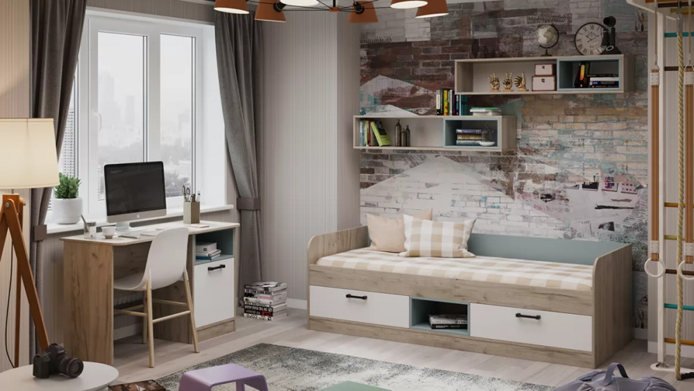 Набор детской мебели «Оливер» №1 Дуб крафт серый, Белый, Серо-голубой в Тюмени