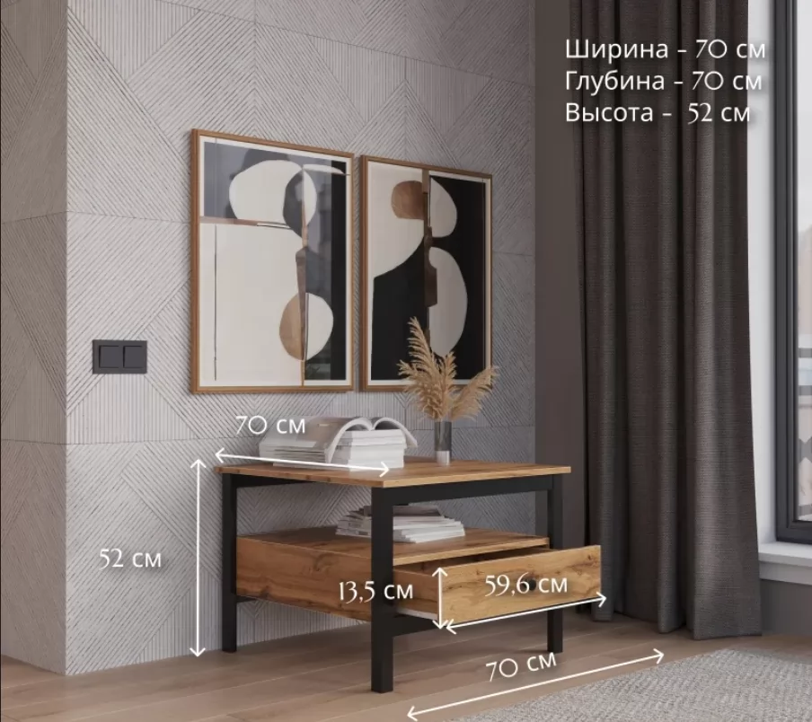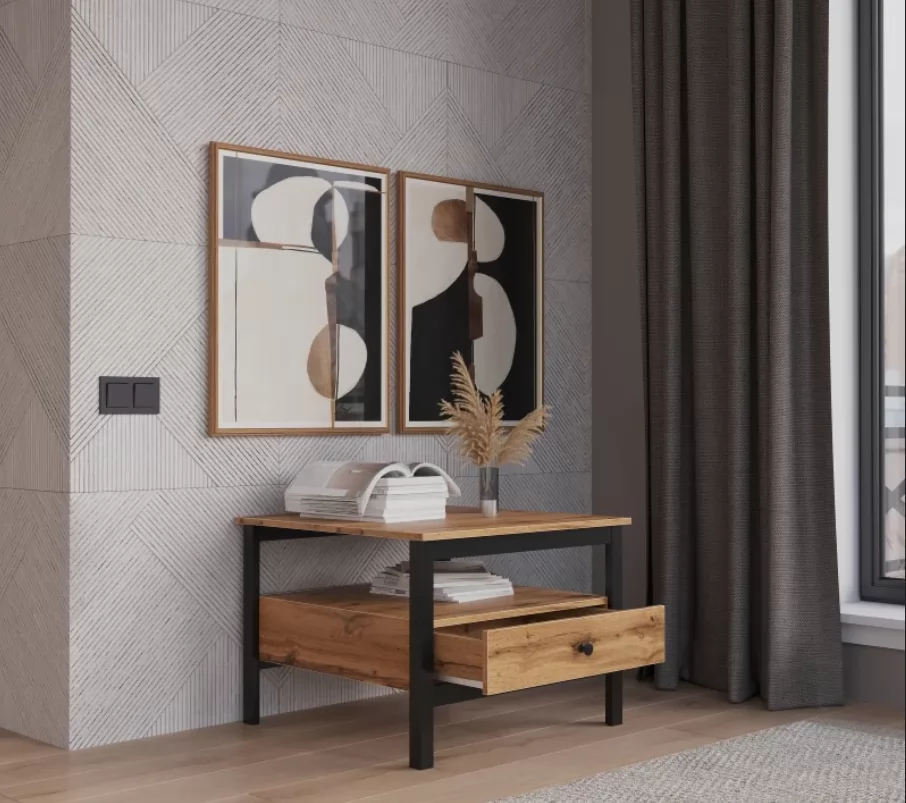 Продуманный дизайн столика позволяет удобно хранить журналы, книги и другие мелочи, оставляя поверхность стола свободной для декора или напитков. Выдвижной ящик обеспечивает дополнительное пространство для хранения, скрывая предметы от посторонних глаз.